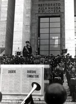 titolo Benito Mussolini Duce dell'Italia fascista all'Universitˆ degli Studi 'La Sapienza'